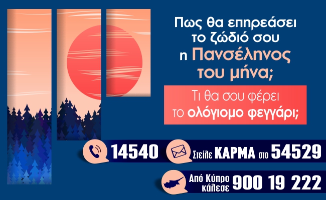 Διαβάστε παρακάτω την επιρροή αυτής της Πανσελήνου στο ζώδιό σας. Αν γνωρίζετε το ζώδιο που βρίσκεται ο Ωροσκόπος σας, διαβάστε και το ζώδιο του Ωροσκόπου σας.